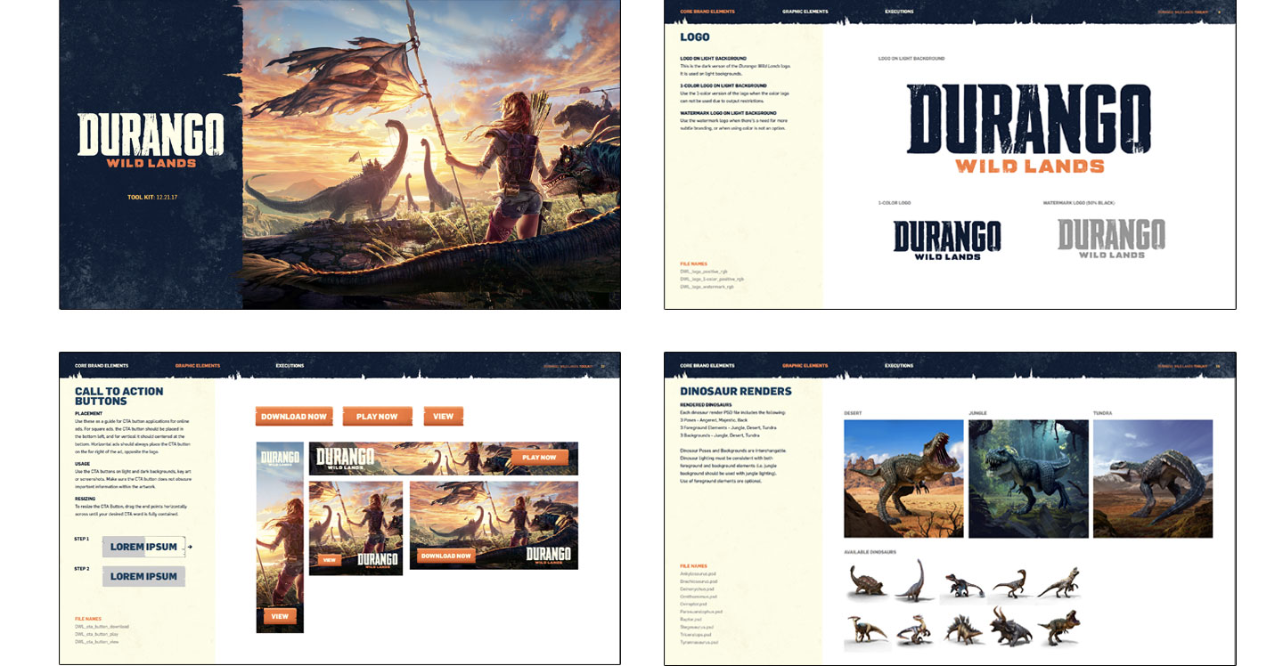 Durango: Wild Lands is the dinosaur MMO game nominated E3’s “Best Mobile/Handheld” at Game Critics Awards! Durango: Wild Lands is the next evolution of fully-featured MMOs on mobile! This open world MMO lets you experience the full freedom to roam a vast, prehistoric land filled with dinosaurs. Adventure through the Wild Lands, play your way, explore, craft and forge a new life and civilization. After years of development by WHAT! Studio, Nexon M set about releasing one of the most anticipated mobile dinosaur games to date. Working with Cinco design, Nexon M produced stellar marketing assets including key art, teaser art, logo, icon and comprehensive brand identity.