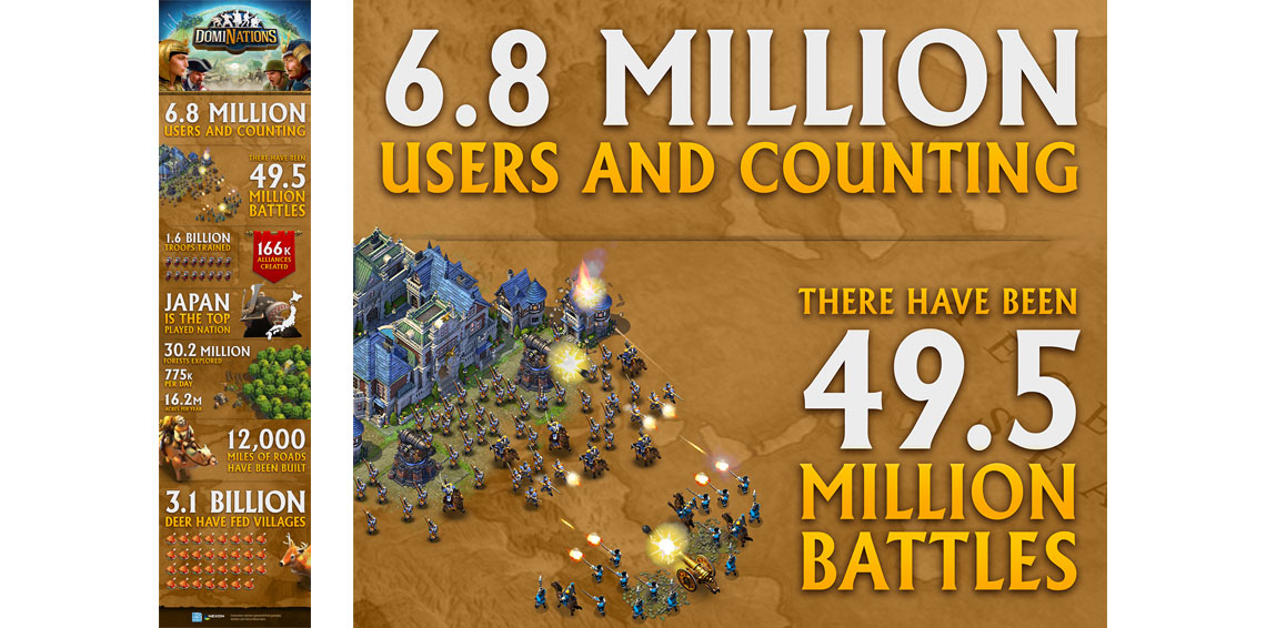 Dominations is the game that started it all for Nexon M. After four years and 50 million downloads to date it still continues its success. Working with the team at BHG the internal creative team at Nexon M has continued to breathe new life into every update and consistently push the creative thinking within that four year timespan.